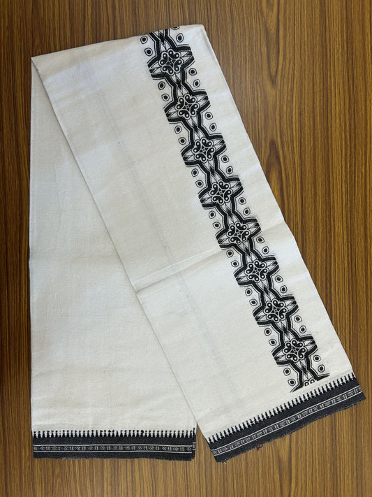 Kaitharikada - Polyster + Cotton - 40s twisted - Pure white Single Kaily / Lungi - 2.5 inch Black Printed Kuppadam Border with White colour body (2 meter / 4 muzham) - 11 KK8041 GAN