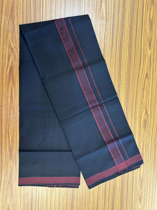 Handloom Single Hallmarked - 10% Discount !! KaithariKada 100% Pure Cotton - Mundu/Dhoti Deep Ruby Body & 1.5 cm Black Kara - (2 meter / 4 muzham)- 2 KK8044 ELA