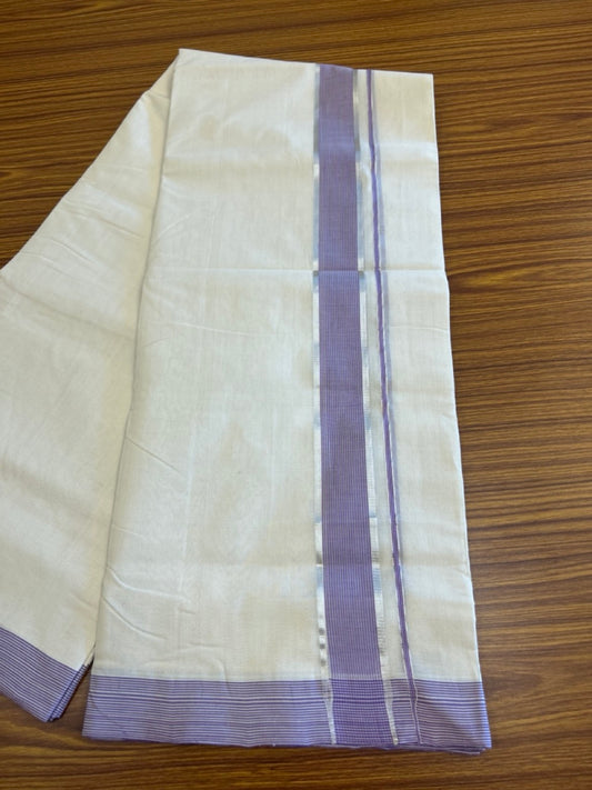 25% Discount!! KaithariKada Handloom Unakkupaav Balaramapuram - 100% Pure Cotton Off White Double - (Unbleached) Mundu/Dhoti - 2.25 inch Lavender & Silver Stripes Kara 4.5 Meters (10 Muzham) - 1KK5041SOM