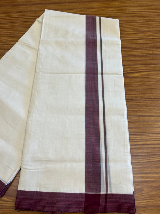 25% Discount!! KaithariKada Handloom Unakkupaav Balaramapuram - 100% Pure Cotton Off White Double - (Unbleached) Mundu/Dhoti- 2 inch Maroon & Black Stripes Kara 4.5 Meters (10 Muzham) - 2KK5041SOM