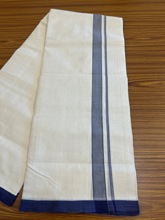 25% Discount!! KaithariKada Handloom Unakkupaav Balaramapuram - 100% Pure Cotton Off White Double - (Unbleached) Mundu/Dothi - 1.75 inch Deep Blue Stripes Kara 4.5 Meters (10 Muzham) - 3KK5041SOM