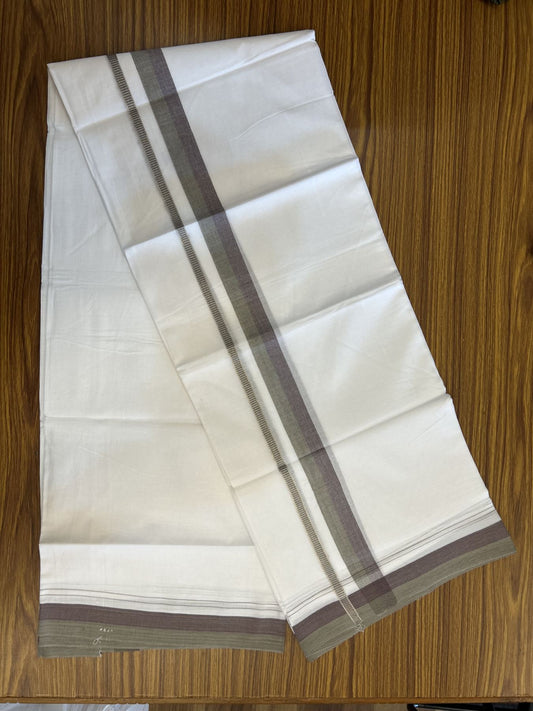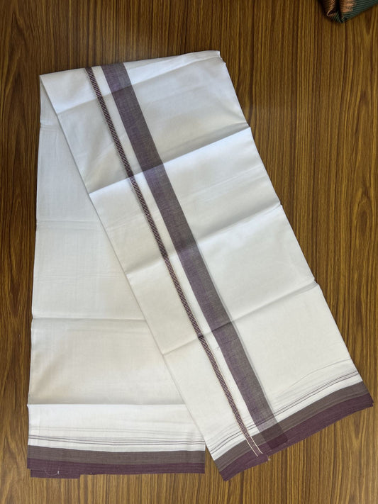 20% Discount! KaithariKada Balaramapuram 100% Cotton Double Pure white Mundu/Dhoti - 100X80 - 1.25 inch Silver Kasav Sage Green & Grape Wine shaded kara - 4 mtr ( 8.5 muzham) - 82 KK5341 VIN