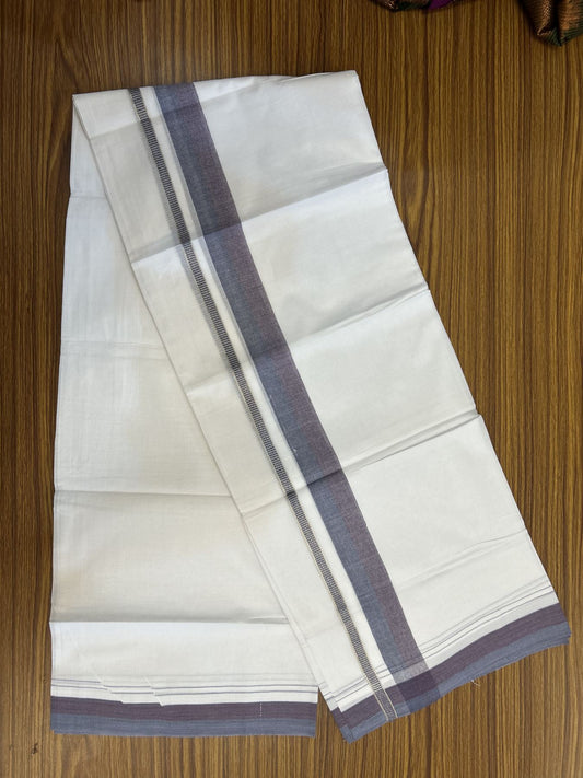 20% Discount! KaithariKada Balaramapuram 100% Cotton Double Pure white Mundu/Dhoti - 100X80 - 1.25 inch Silver Kasav Navy Blue & Purple Ash shaded kara - 4 mtr ( 8.5 muzham) - 85 KK5341 VIN