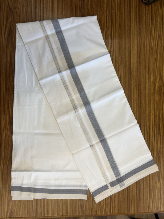20% Discount! KaithariKada Balaramapuram 100% Cotton Double Pure white Mundu/Dhoti - 100X80 - 1.25 inch Silver Kasav Black & Dark Khaki shaded kara - 4 mtr ( 8.5 muzham) - 84 KK5341 VIN