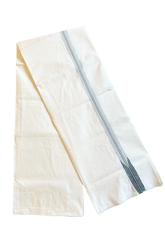 29% DISCOUNT ! KaithariKada Balaramapuram 100% COTTON SINGLE OFF WHITE - (Unbleached) Mundu/Dhoti-100X100- 0.75 Inch 8 Line Puliyilakkara Dark Green Chutty (2 meter / 4 muzham)- 27KK411ASH