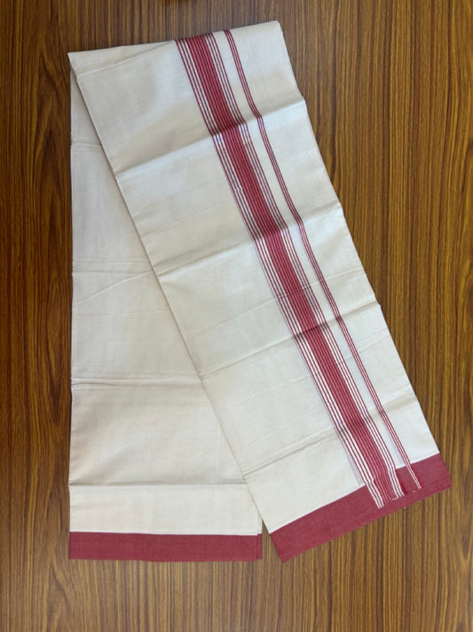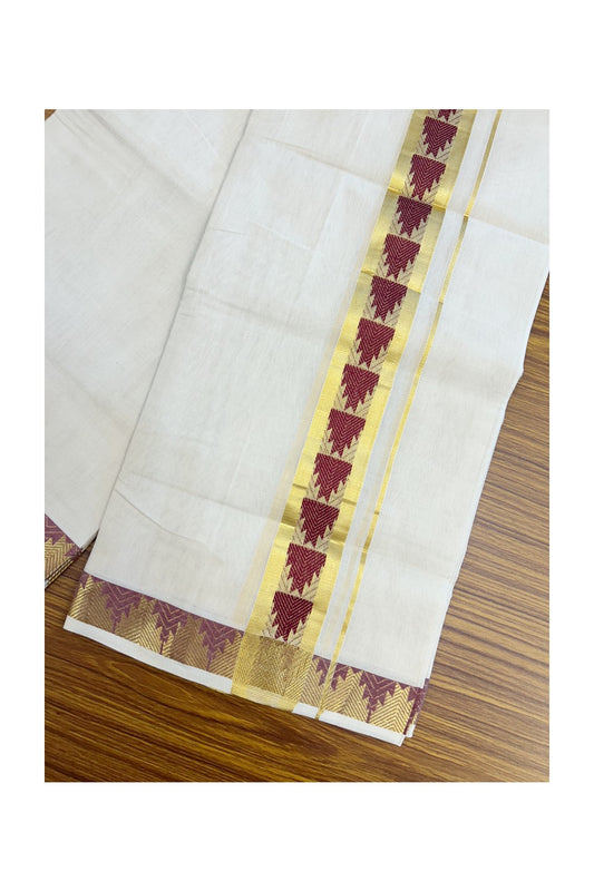 25% DISCOUNT ! KaithariKada HANDLOOM Unakkupaav Balaramapuram - 100% PURE Cotton Off White - (Unbleached) Double Mundu/Dhoti - 1.75 inch Gold Kasavu & Maroon Temple Jacquard Design Kara - 3KK5206 ABH