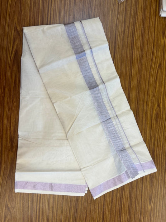 12% Discount!! KaithariKada Balaramapuram 100% Silk Double Mundu/Dhoti - Lavender Colour Body - 0.5 inch Gold Kasavu Kara 3.60 mtr (8 muzham)- 8KK5222 GAN