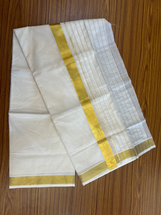 20% Discount! Kaitharikada Balaramapuram 100% Cotton Off White Double Mund/Dhoti - 60s - 8 Inch Gold Kasav Stripes Kara 4 mtr (8.5 muzham) - 6 KK5281 GAN