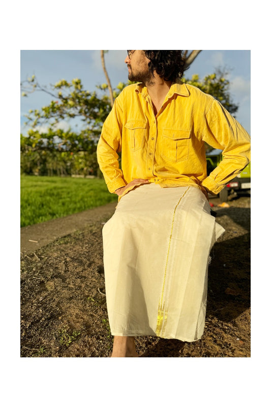 KaithariKada Balaramapuram Pure Cotton Double Off White - (Unbleached) Mund/Dhoti - 60s - 1.5 inch Gold Kasav Jacquard Design Kara 4 mtr (8.5 muzham) - 12 KK5281 GAN