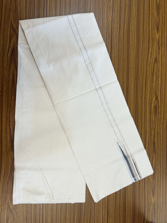 25% Discount! KaithariKada Handloom Unakkupaav Balaramapuram - Cotton Double Mundu/Dhoti Off white (Unbleached) - 100x80 - 1.5 inch Silver Kasav Grey & Navy Blue striped Kara - 4 meter (8.5 Muzham) - 29 KK5320 RAM