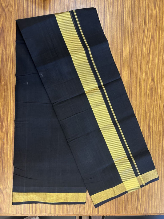 25% Discount! KaithariKada Handloom Unakkupaav - Kerala Handloom - Pure Cotton Double Mundu/Dhoti (Unbleached) - 100x80 - Black Colour Body - 2 inch Gold Kasavu Striped Kara - 4 mtr (8.5 Muzham) - 3 KK5342 ABH