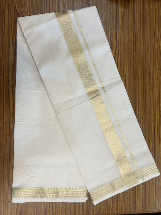 25% Discount ! KaithariKada Handloom Unakkupaav Kerala Handloom - 100% Pure Cotton Off White (Unbleached) - Double Mundu/Dhoti - 2 inch Light Gold Kasavu Tissue Body - 4 mtr (8.5 Muzham) - 13 KK5342 ABH