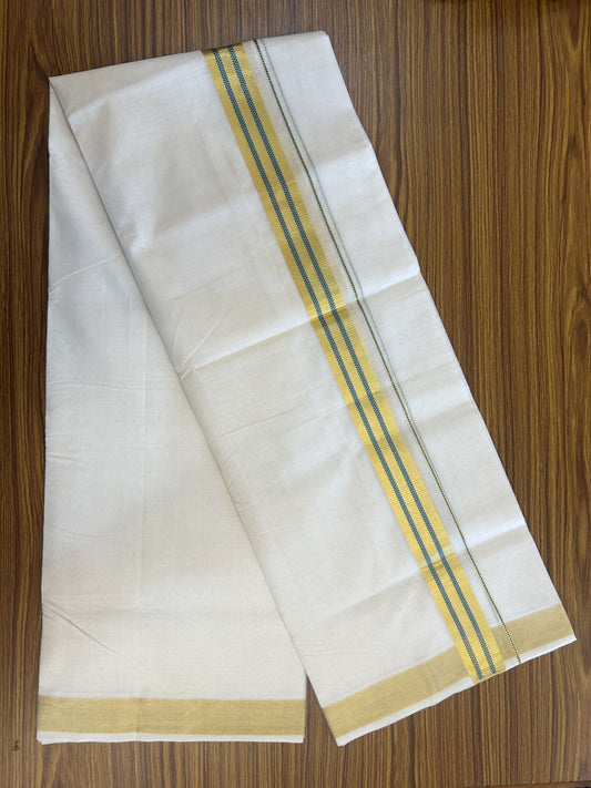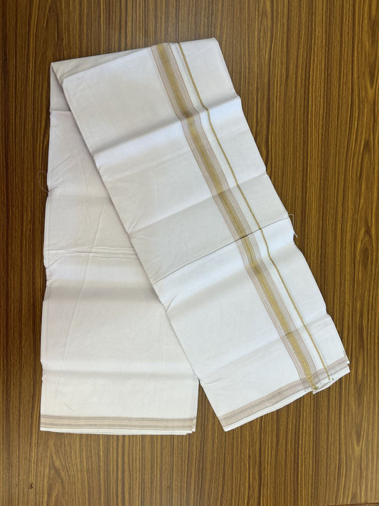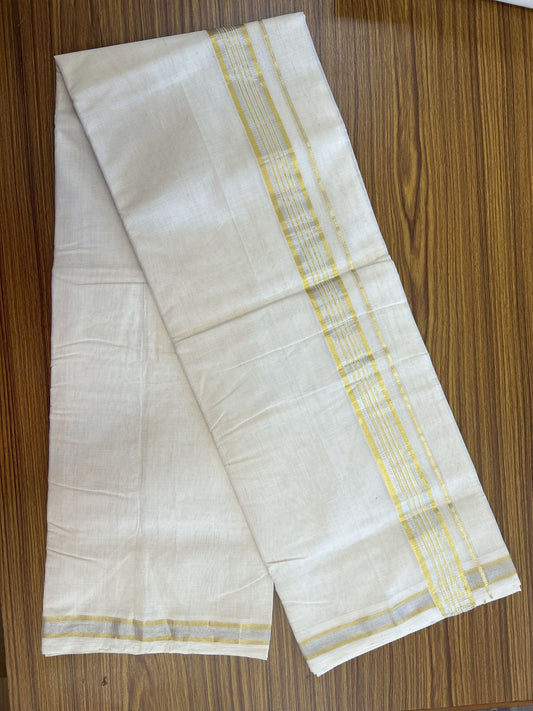 25% Discount ! KaithariKada Handloom Millpaav - Kerala Handloom - 100% Pure Cotton Off White (Unbleached) Double Mundu/Dhoti - 80x90 - 1.5 inch Gold Kasav & Silver Kasav striped Kara 4 mtr (8.5 Muzham) - 34 KK5337 RAM