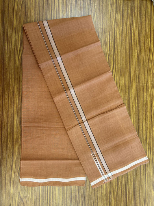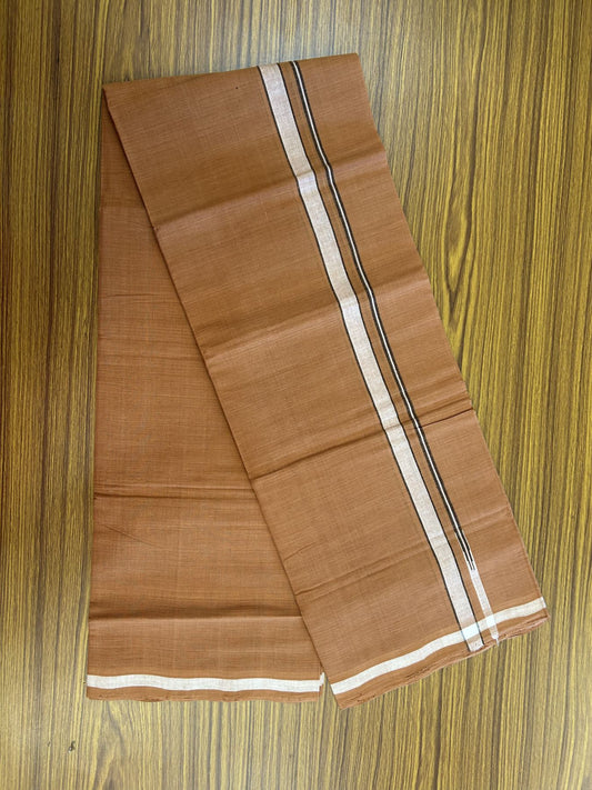 Kerala Handloom Single Hallmarked - 10% Discount !! KaithariKada 100% Pure Cotton - Mundu/Dhoti Burnt Orange Body - 1.5 cm White Kara - (2 meter / 4 muzham) - 40 KK8048 ELA