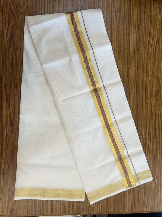 25% Discount ! KaithariKada Handloom Unakkupaav Kerala Handloom - Pure Cotton Off White - (Unbleached) Double Mundu/Dhoti - (100X80) - 1.5 inch Gold Kasav & Maroon Jacquard Design Kara - 4 mtr (8.5 Muzham)- 19 KK5342 ABH