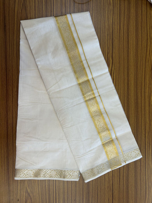 25% Discount ! KaithariKada Handloom Unakkupaav Kerala Handloom - Pure Cotton Off White - (Unbleached) Double Mundu/Dhoti - (100X80) - 1.5 inch Gold & Silver Kasav Jacquard Design Kara - 4 mtr (8.5 Muzham)- 10 KK5342 ABH