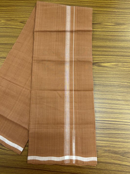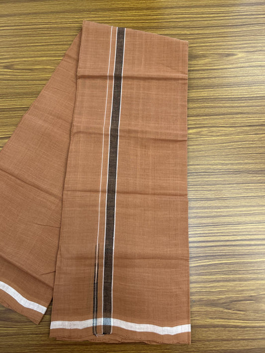 10% Discount !! KaithariKada 100% Pure Cotton - Handloom Single Mundu/Dhoti Kavi Brown Colour Body & 0.75 inch Puliyilakkara White Striped Chutty Kara (2 meter / 4 muzham)- 4KK8020ELA