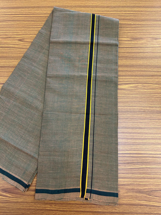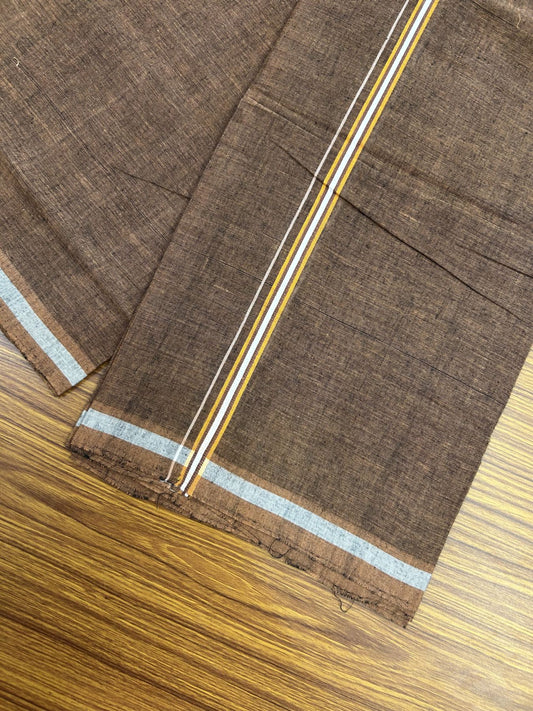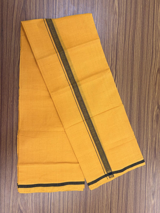 Handloom Single Hallmarked - 10% Discount !! KaithariKada 100% Pure Cotton - Mundu/Dhoti Dark Mustard Yellow Body & 1.5 cm Black & Brown Stripes Kara - (2 meter / 4 muzham) - 6 KK8044 ELA