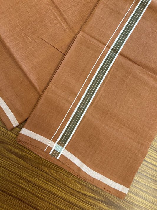 Handloom Single Hallmarked - 10% Discount ! KaithariKada 100% Pure Cotton - Mundu/Dhoti 0.5 inch Olive Green & White Kara with Kavi colour Body - (2 meter / 4 muzham) - 60 KK8044 ELA