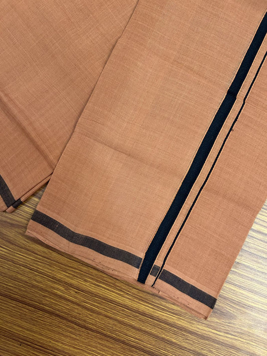Handloom Single Hallmarked - 10% Discount !! KaithariKada 100% Pure Cotton - Mundu/Dhoti 2 cm Black Kara with Light Orange colour Body - (2 meter / 4 muzham) - 38 KK8044 ELA