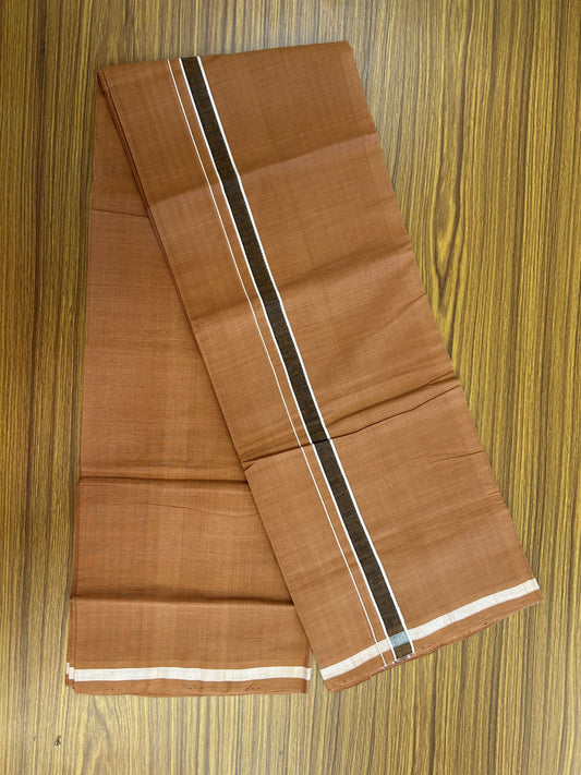 Kerala Handloom Single Hallmarked - 10% Discount !! KaithariKada 100% Pure Cotton - Mundu/Dhoti Dark Brown Body - 1.5 cm White Kara - (2 meter / 4 muzham) - 41 KK8048 ELA