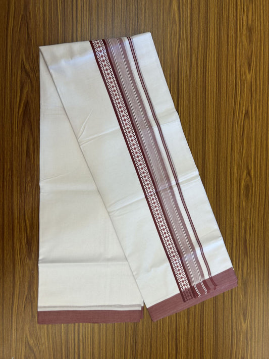 20% Discount ! KaithariKada Balaramapuram Cotton Double Pure white Mundu/Dhoti- 80s - 2.5 inch Maroon Printed Shade Stripes Design Kara - 3.65 mtr (8 muzham) - 38 KK5329 GAN