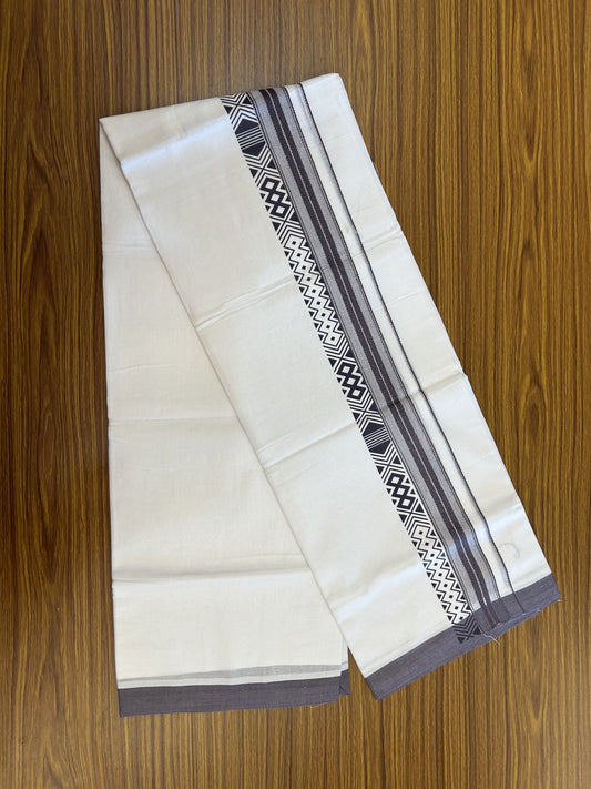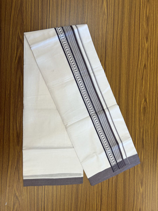 20% Discount ! KaithariKada Balaramapuram Cotton Double Pure white Mundu/Dhoti- 80s - 2.5 inch Brown Printed Shade Stripes Design Kara - 3.65 mtr (8 muzham) - 59 KK5329 GAN
