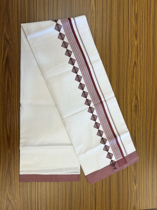 20% Discount ! KaithariKada Balaramapuram Cotton Double Pure white Mundu/Dhoti- 80s - 2.5 inch Light Maroon Printed Shade Stripes Design Kara - 3.65 mtr (8 muzham) - 8 KK5329 GAN