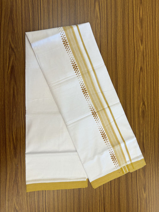 20% Discount ! KaithariKada Balaramapuram Cotton Double Pure white Mundu/Dhoti- 80s - 2.5 inch Yellow Printed Shade Stripes Design Kara - 3.65 mtr (8 muzham) - 13 KK5329 GAN