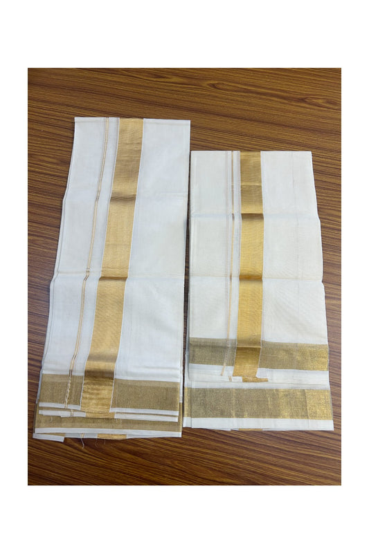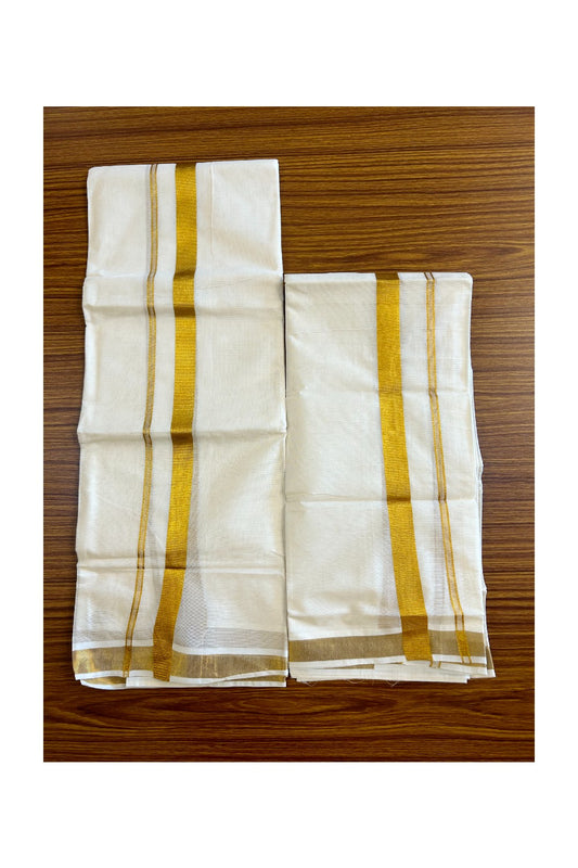 25% Discount!! KaithariKada - Kerala Pure Cotton OFF WHITE SINGLE SET MUND FOR WOMEN - Gold Kasavu Kara - 8KK5152PMC