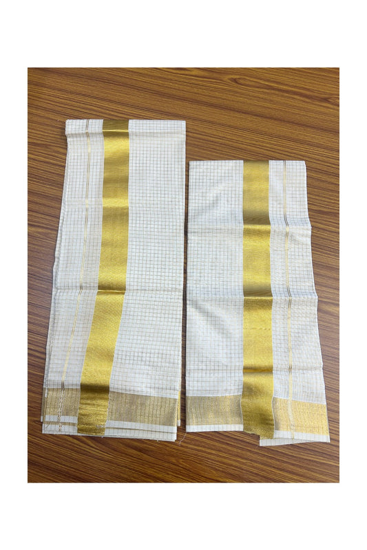 25% Discount!! KaithariKada - Kerala Pure Cotton OFF WHITE SINGLE SET MUND FOR WOMEN - EXTRA LENGTH - Check Gold Kasavu Big Kara - 5KK5152PMC