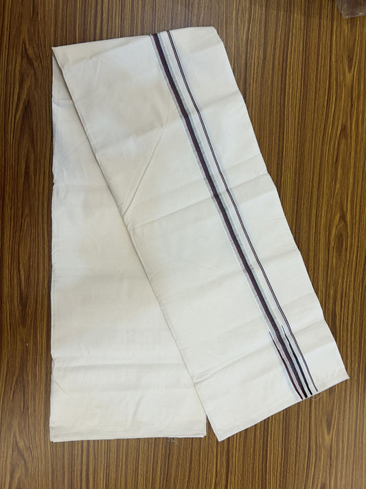 25% Discount ! Kaitharikada Handloom Unakkupaav Balaramapuram - 100% Pure Cotton Off White - (Unbleached) Double Mundu/Dhoti - 100x80 - 1.75 inch Silver Kasav Navy Blue & Purple Striped Kara 4 mtr (8.5 Muzham) - 32 KK5320 RAM