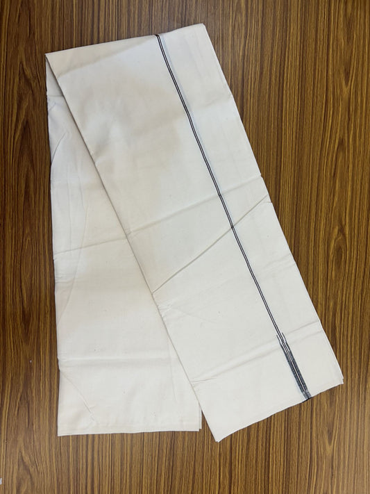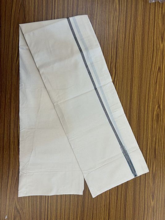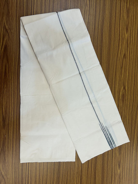25% Discount ! Kaitharikada Handloom Unakkupaav Balaramapuram - 100% Pure Cotton Off White - (Unbleached) Double Mundu/Dhoti - 100x80 - 1.75 inch Silver Kasav Black & Blue Striped Kara 4 mtr (8.5 Muzham) - 34 KK5320 RAM