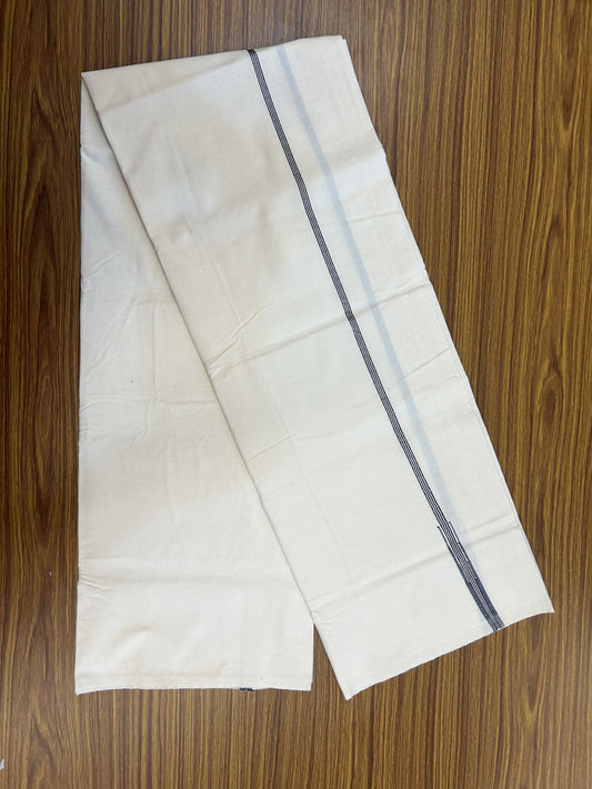 25% Discount! KaithariKada Handloom Unakkupaav Balaramapuram - Cotton Double Mundu/Dhoti Off white (Unbleached) - 100x80 - 1.5 inch Silver Kasav Grey & Navy Blue striped Kara - 4 meter (8.5 Muzham) - 29 KK5320 RAM