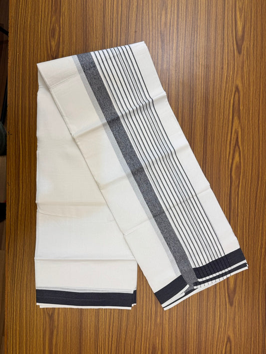 Pure White Double 20% Discount! KaithariKada 100% Cotton Pure Cotton Double Mundu / Dhoti - 100x80 - 5 inch Black Stripes Shaded Kara 3.80 meter (8 muzham) - 84 KK5220 THI