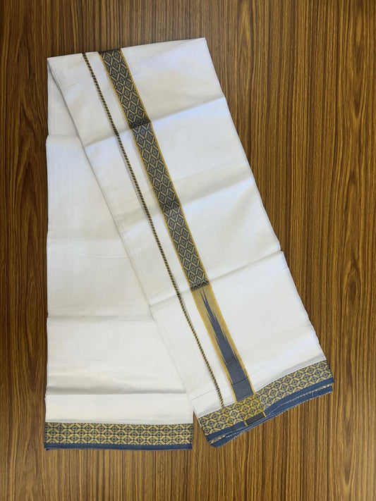 20% Discount ! KaithariKada Balaramapuram 100% Pure Cotton Double Pure White Mundu/Dhoti - 100x80 - 1.25 inch Puliyilakkara Gold Kasav & Peacock Blue Jacquard Design Chutty kara 3.90 mtr (8 Muzham) - 18 KK5321 CJT