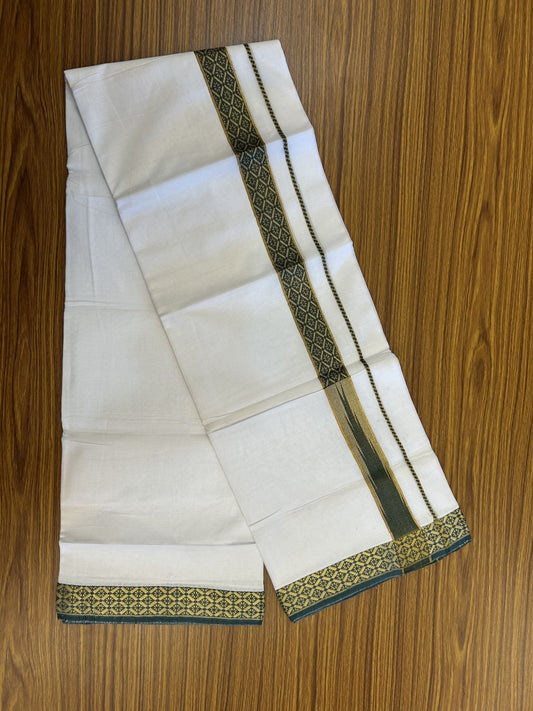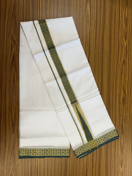 20% Discount ! KaithariKada Balaramapuram 100% Pure Cotton Double Pure White Mundu/Dhoti - 100x80 - 1.25 inch Puliyilakkara Gold Kasav & Green Jacquard Design Chutty kara 3.90 mtr (8 Muzham) - 19 KK5321 CJT