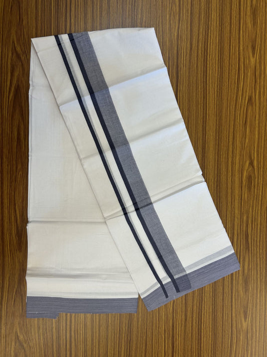 20% Discount! KaithariKada Balaramapuram 100% Cotton Double Pure white Mundu/Dhoti- 100x80 - 1.5 inch Ash Blue shaded kara - 3.75 mtr ( 8 muzham) - 10 KK5323 VAS