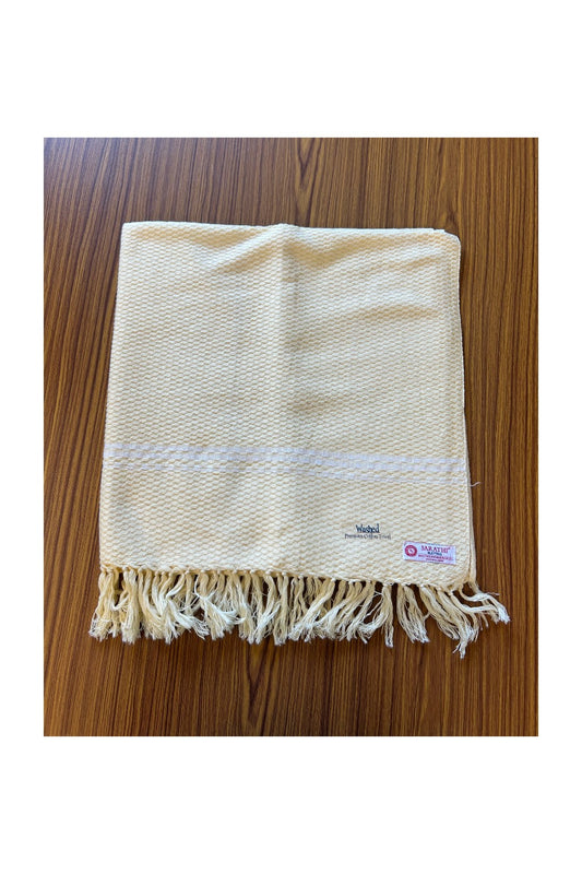 Kaitharikada - HANDLOOM Pure Cotton Kerala Towel - Thorthu - Light Brown Body & White kara - 5KK481ELA