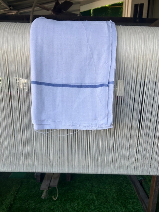 Kaitharikada - HANDLOOM Pure Cotton Kerala Towel - Thorthu - White Body & Blue kara - 1KK480KAL