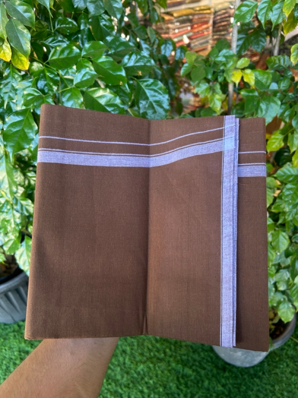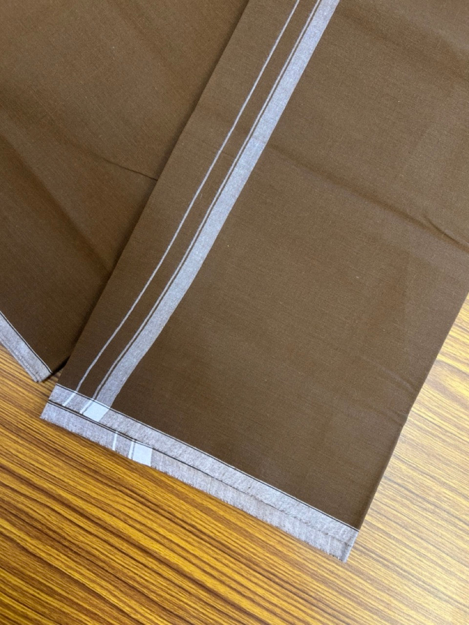 10% Discount ! Kaitharikada - Pure Cotton - Kaily / Lungi - (40s) - 0.5 inch White Shaded Kara with Dark Brown colour body (2 meter / 4 muzham) - 1 KK8029 GAN