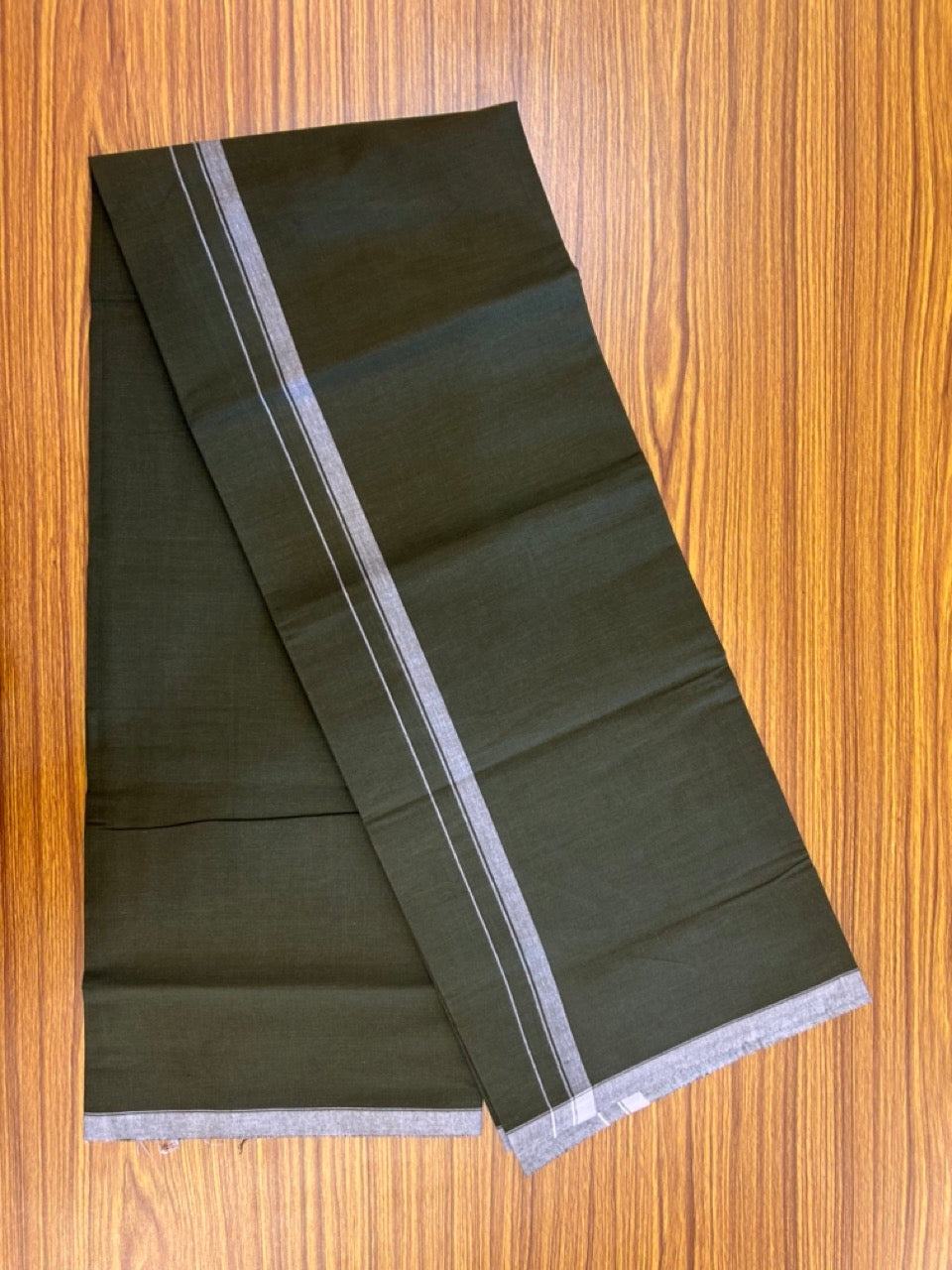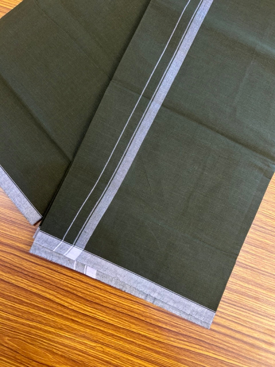 10% Discount ! Kaitharikada - Pure Cotton - Kaily / Lungi - (40s) - 0.5 inch White Shaded Kara with Olive Green colour body (2 meter / 4 muzham) - 8 KK8029 GAN