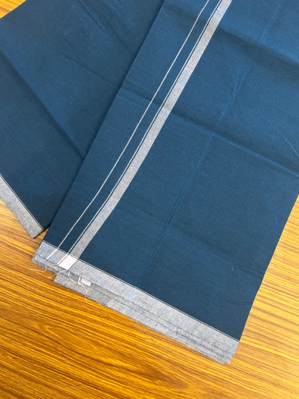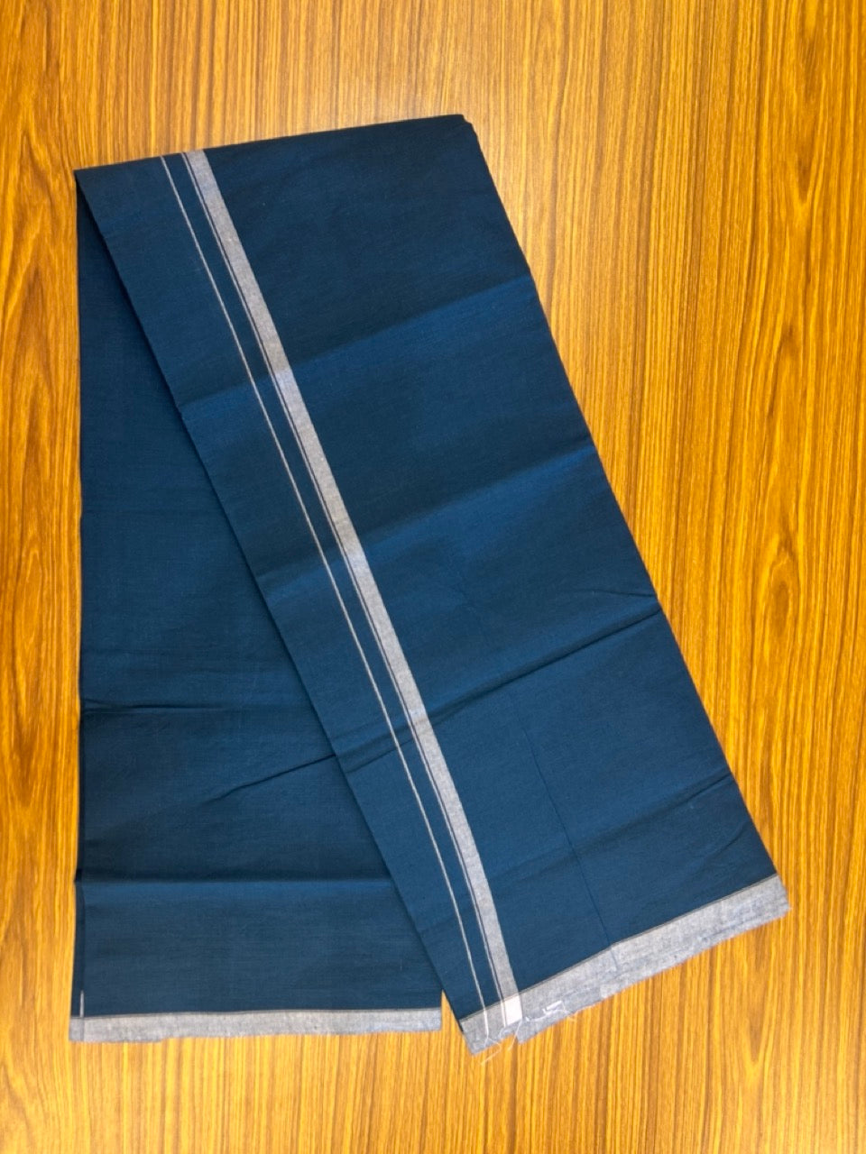 10% Discount ! Kaitharikada - Pure Cotton - Kaily / Lungi - (40s) - 0.5 inch White Shaded Kara with Dark Blue colour body (2 meter / 4 muzham) - 7 KK8029 GAN