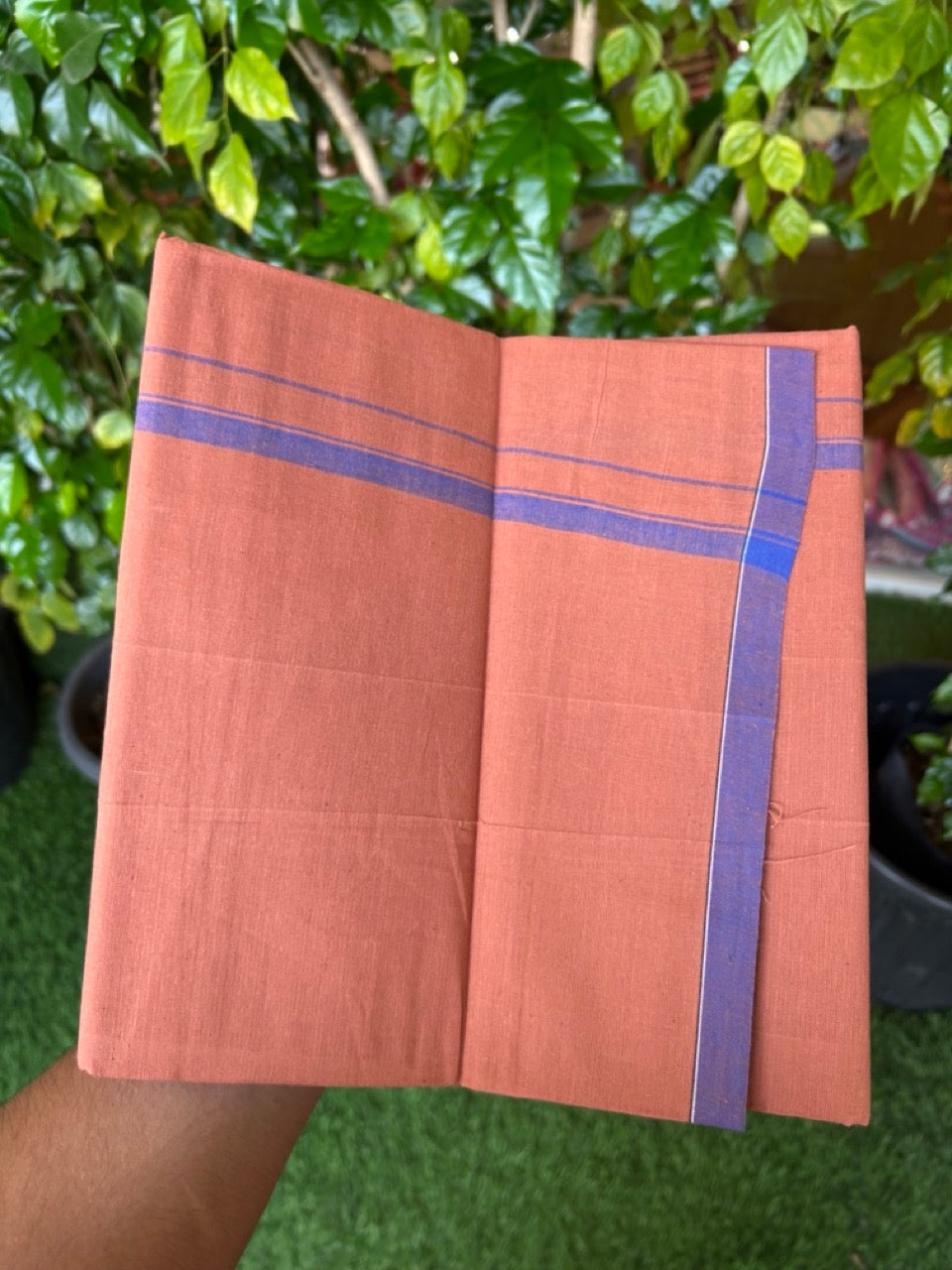 10% Discount!!! Kaitharikada - Pure Cotton - Single Kaily / Lungi - 0.5 inch Violet Kara with Kaavi colour body (2 meter / 4 muzham) - 28KK8024 GAN