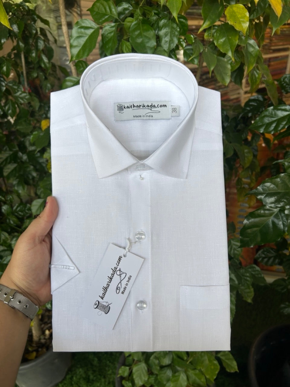 White Shirt - Half Sleeve - Linen Finish - Pure Cotton Polyester - Kaitharikada Original - Politician Type - 1KK1001S