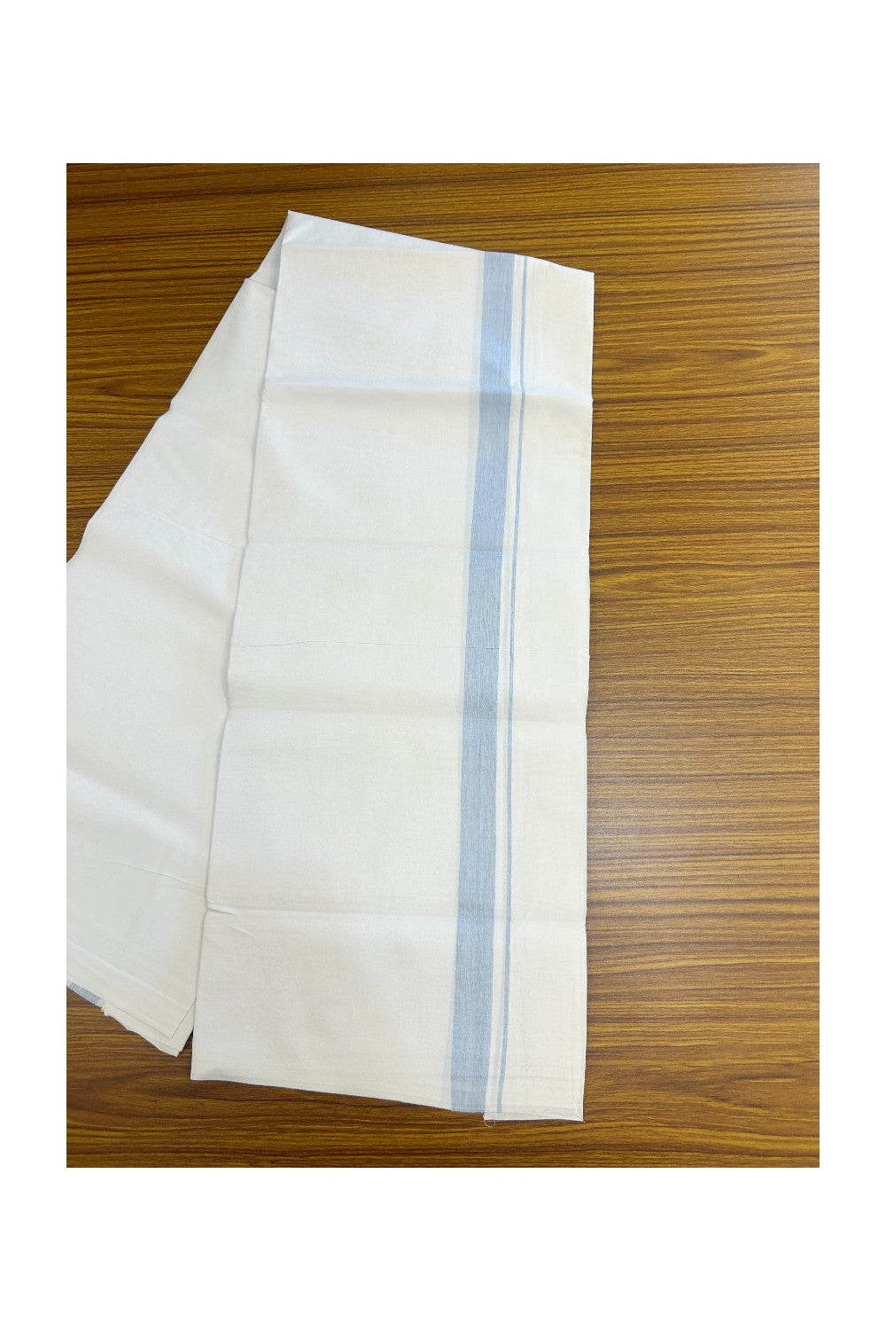 20% DISCOUNT ! KaithariKada Balaramapuram 100% COTTON SINGLE PURE WHITE Mundu/Dhoti-Twisted 100s Thread- 1.5 inch Shaded Sky Blue Kara (2 metre / 4 muzham) - 4KK5224 ASH