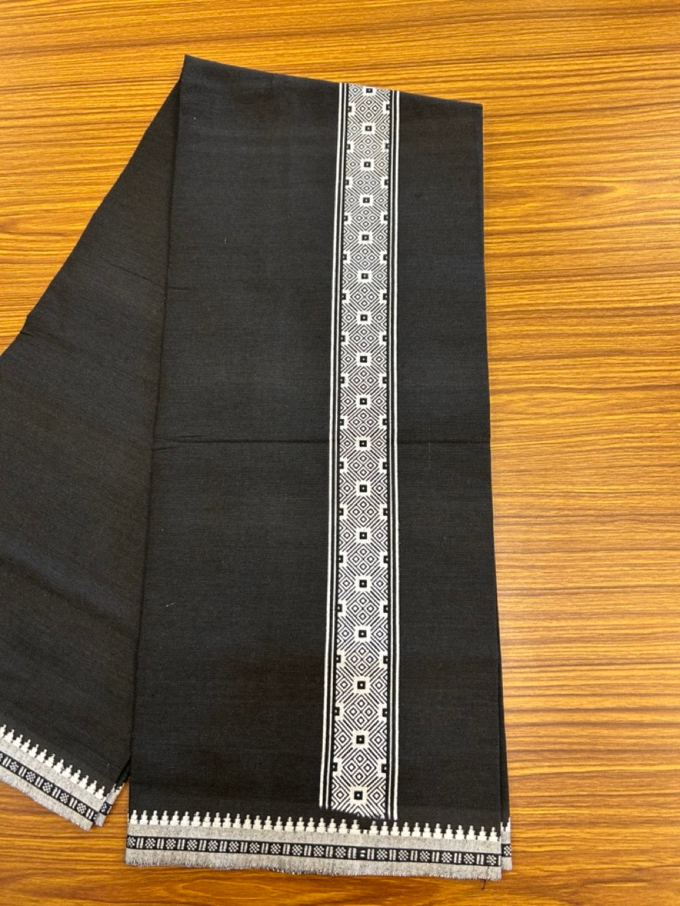 18% Discount! Cotton 80% & Polyester 20% - Kaitharikada Single Black - Kaily / Lungi - 40s - 2 inch Printed kara Kuppadam Border (2 meter / 4 muzham) - 6 KK8040 MUT