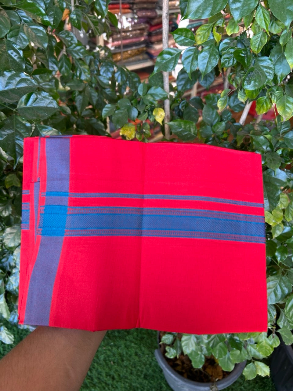 19% Discount!!! Kaitharikada - Single Kaily / Lungi - 1.25 inch Peacock Blue Pattern striped kara with Chilly Red colour body (2 meter / 4 muzham) - 55 KK8035 GAN