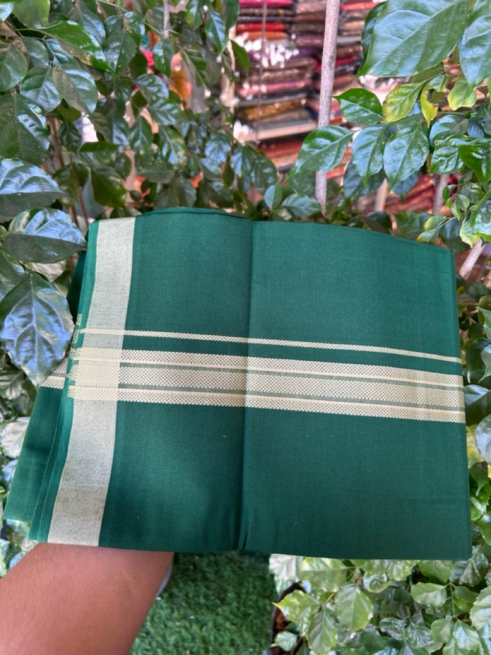 19% Discount!!! Kaitharikada - Single Kaily / Lungi - 1.25 inch Sand Brown Pattern striped kara with Bottle Green colour body (2 meter / 4 muzham) - 42 KK8035 GAN
