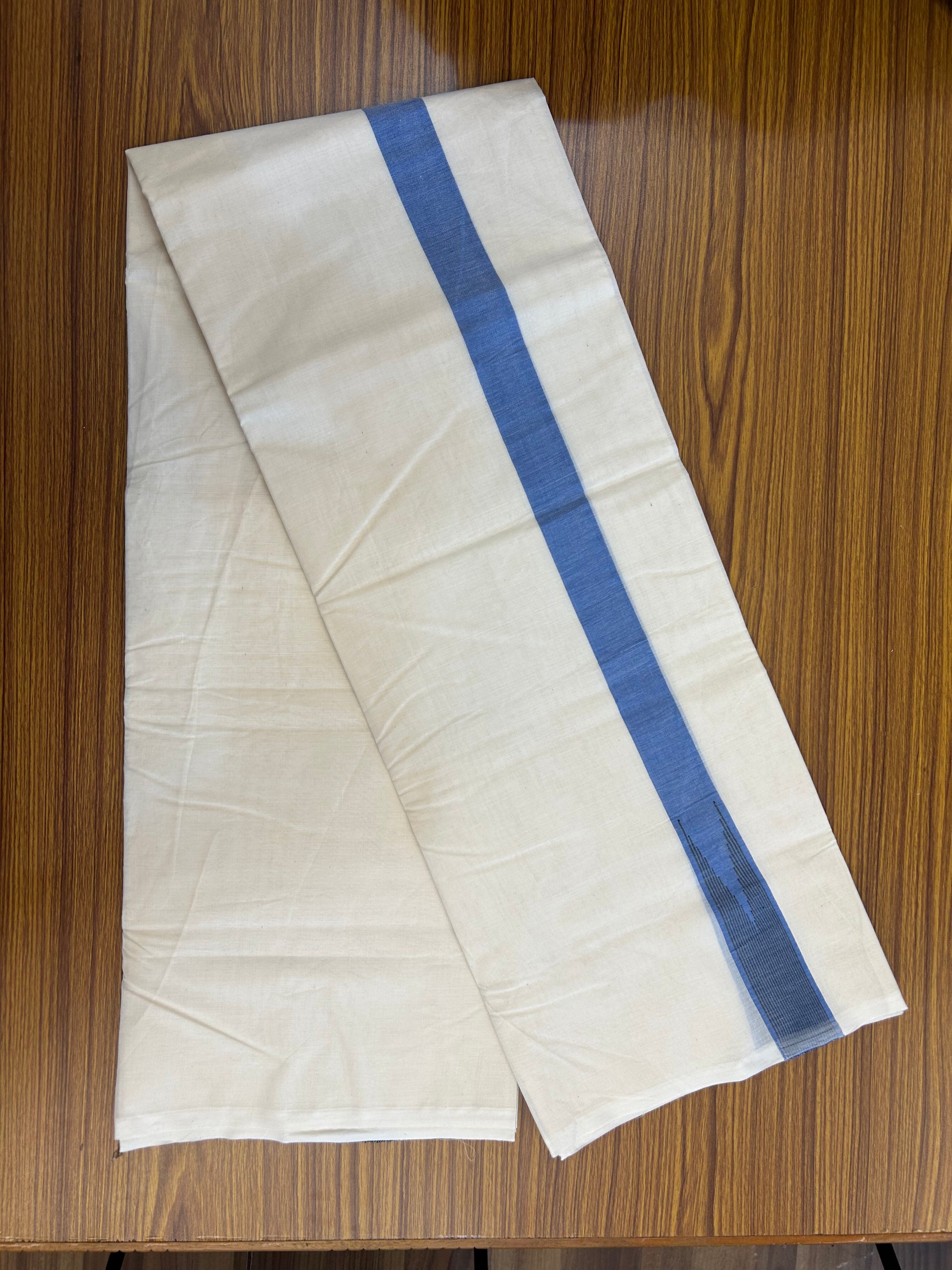 20% Discount ! KaithariKada 100% Cotton off white Double - (Unbleached) Mundu/Dhoti - 100X100 - 1.25 inch Puliyilakkara Blue & Black Striped Chutty kara - 4 mtr (8.5 muzham) - 8 KK5347 ASH